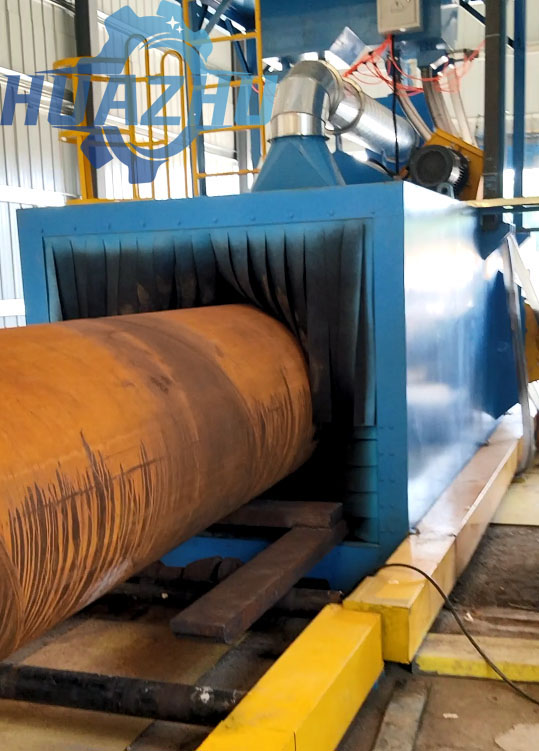某鋼管公司購買了青島華鑄機械有限公司一臺鋼管外壁拋丸機,設備現在安裝調試完畢,現小編將鋼管拋丸機現場的作業效果圖片分享給大家。